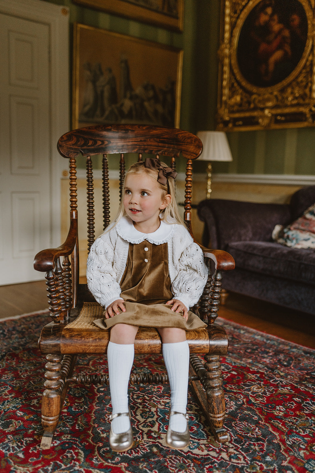 Our new collection is a trio of flowing dresses with an enchanting vintage feel. Velvet as soft as fall season and irresistible peter pan collars trimmed with British lace. Yokes on Liberty fabric, trimmed with ruffles inviting us to dance. Beautifully illustrated flowers complemented by elegant leaves and vibrant butterflies camouflaged perfectly with in the entwined leaves. Embroidery reminding us of a trellis walk.